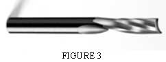 Typically High Speed Steel (HSS) is the material of choice in air routers due to its ability to withstand impacts and its grinding characteristics that allow a sharper edge than Solid Carbide (SC) after machining. These properties lend themselves to use in environments where tool breakage and operator fatigue are common. Other features common to hand tooling for use in thermoformed parts are the extended shank and cutting edge lengths. The extended shanks allow for a larger colleting area and an additional surface for internal guide bearings to ride on. This improves tool rigidity and helps to reduce cutter breakage while improving the overall "feel" of the routing operation. The extended cutting edge length gives extra cutting area past the nose bearings and allows the operator to present the router bit to the material without having to remove any safety or guide components from the router head.